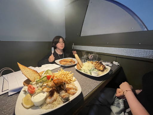 I ordered the Assiette CombinĂ©e with pork, chicken, and shrimp souvlakisâbecause moderation is for Mondays. Feeling adventurous (and slightly overconfident), I added butterfly shrimp. Big mistake. Or maybe the best mistake? The plate that arrived looked like a catering tray for a small wedding. I stared at it. It stared back. We had a moment.