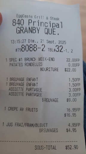 Read moreJe suis énormément fâchée. Je suis allée dans un restaurant de déjeuner à Granby aujourd'hui. Nous étions 4. J'ai pris une grosse assiette et mon amie aussi afin de partager avec mes filles de 3 ans et 5 ans. J'ai alors demandé 2 assiettes afin qu'elles aient les leurs. Je nous ai pris un jus et 2 verres de lait. Nous avons tous bien mangé sans gaspillage. Quand j'ai reçu la facture j'étais sous le choc. On m'a chargé 3$ par assiette vide. J'ai alors 6$ de plus sur ma facture, car j'ai voulu éviter de gaspiller. Mon amie ne voulait qu'un bol de fruits et je lui ai proposé de prendre une crêpe aux fruits pour donner les crêpes et des fruits aux filles. Je vais à beaucoup de restaurants et c'est la première fois qu'on me charge pour des assiettes vides 😡😡🤬🤬🤬 La serveuse ne m'a jamais dit que j'allais devoir payer 3$...