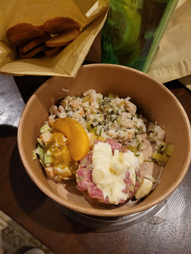Au moins, les croûtons et les chips étaient corrects. Je conseille vraiment pas ce combo. Par contre, je recommande le tartare aux crevettes silly billy seul. Je suis vraiment déçu de cette expérience.