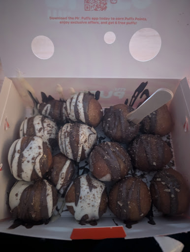Nous avons eu une expérience positive et négative ce samedi 23 mars. Nous étions 6 personnes à manger sur place. Mon conjoint a commandé 30 MrPuffs. Nous en avons eu davantage (41) ce qui nous a agréablement surpris. Ils étaient très bons et nous nous sommes bien régalés.