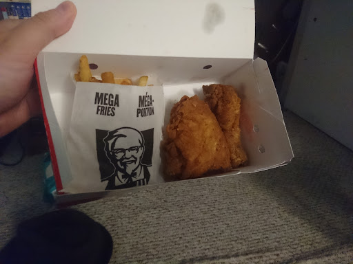 Read moreI just came from kfc. When I arrived at the store there were 4 people at one table waiting for their orders. No one else in the store. I waited over 10 min before I was asked for my order , a 3 PC combo. After a couple more min the young lady came out and told me I would have to wait another 9 min for my order , or settle for a substitute , which normally cost less , for the same price. I cancelled my order and asked for a refund. If I had been served as soon as I came in , I could have been informed at that time , rather than keeping me hanging on without a choice. I felt like they had been stalling , rather than telling me there would be a considerable wait. As well , my total on the meal would have been $14.12 , far too expensive for a 3 PC chicken dinner. Totally unimpressed with this...