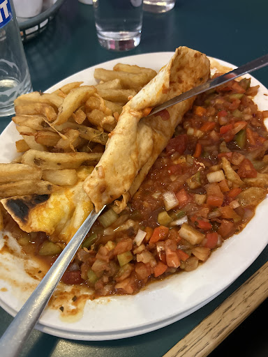 Ā Ā Ā Read moreI ordered the chicken burrito. On the menu, it is listed to have chicken, cheese, celery, tomatoes, and onions. It came as a soupy mess and the fries were served on the same plate in a pile of liquid. The tortilla shell was burnt and covered in grease, and the fresh cut fries were soggy and soaked in the disgusting liquid that was pouring out of the burrito. The restaurant was completely empty, and our waitress still took forever to get our drinks. When I told her that I didnāt enjoy my meal and Iād like it taken off the bill, she said only half of it would be comped because the fries were gone. I threw the fries out because they were that soggy and soaked in the tomato liquid that they werenāt edible, they had turned into squishy mashed potato liquid. Terrible service and...