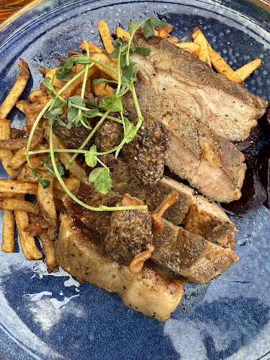 We also had lunch the next day. I highly recommend the Double Duck Fat Fries which is served with the Harissa and lime aioli, Old Growler gouda and green onion. It was superb! For lunch I had the Le Caveau Reuben which was on a House-cured beef brisket with cider mustard, sauerkraut and Gruyere on house-made molasses bun and my partner had the Grilled Coppa Steak with Frites and Madagascar sauce. It was so delish! The restaurant itself is beautiful and it also has the pergola which is gorgeous for sitting outside.