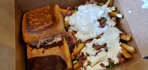 The second time I ate here, when I forgot to bring my lunch again and was busy during midterms, I got a "buffalo chicken poutine" for $13 or so (just a size regular), once again to replace the lunch I forgot. I wanted one of the cheaper options on the menu which is why I chose this. It also sounded good. The poutine tasted good, but I was shocked by the small amount of food for the price. I was still hungry after eating it. My belly was growling after 20 mins, which was frustrating. There were a few small slices of chicken strip - about the quantity of 1-2 chicken nuggets. It was like a topping, not the protein source of the meal. There was a very small amount of cheese curds as well. Not enough to really feel like a satisfying poutine. You can tell they are very conservative with their portioning.