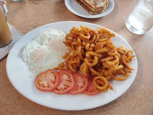 Friendly staff, lots of seating (and window seating!), clean, and a good atmosphere in general. Usually only get breakfast items (no matter the time of day) and the eggs are cooked perfect each time and the fruit/veggies I have with my dish are always fresh. Curly fries are always a good side too! They do have decaf (fresh as they usually make a pot when ordered) and the milkshakes are a meal unto themselves. Kid friendly with their own menu. Lots of regulars come here - you can hear them be greeted by name.