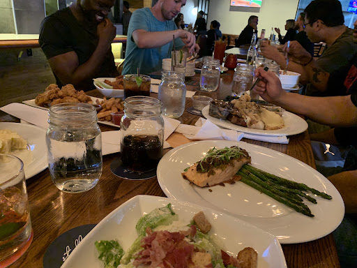 Read moreWeâre from out of town and wanted to go somewhere for a ânicerâ type of dinner. We went around 7pm and the parking lot was packed full. When we got in, the couple in front of us who had just asked for a seat quickly decided to go elsewhere based off how busy it was. We were told they had a spot for us and brought us to a bar table with very high bar stools. Iâm 5 foot and have a bad ankle so I asked if they had other seating that was lower (notable empty tables all over the restaurant) the gentleman said ânoâ and rolled his eyes. Our server took quite a while to come over to our table but when she did, we were pleased with her professionalism and friendliness. We ordered drinks from the bar and it took 15 minutes to get them (one being a beer off tap). We ordered appetizers and had to wait another 30 or so minutes for those to come- we didnât even get half way through appies and our food arrived. The table wasnât big enough for the appetizers and full meals so we had to eat quickly and awkwardly hold the smaller plates to make room for our large plates. The food was half hot and half cold. While the presentation was good; the asparagus was undercooked, almost left raw. The mashed potatoes werenât anything to write home about and the Cajun chicken was underwhelming to say the least. Our server JâLyn was incredible and very apologetic for the chaos and long wait times. We probably wouldnât eat here again if we come into town. It was okay. JâLyn made our night with her wonderful service...