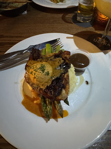 Read moreWe’re from out of town and wanted to go somewhere for a “nicer” type of dinner. We went around 7pm and the parking lot was packed full. When we got in, the couple in front of us who had just asked for a seat quickly decided to go elsewhere based off how busy it was. We were told they had a spot for us and brought us to a bar table with very high bar stools. I’m 5 foot and have a bad ankle so I asked if they had other seating that was lower (notable empty tables all over the restaurant) the gentleman said “no” and rolled his eyes. Our server took quite a while to come over to our table but when she did, we were pleased with her professionalism and friendliness. We ordered drinks from the bar and it took 15 minutes to get them (one being a beer off tap). We ordered appetizers and had to wait another 30 or so minutes for those to come- we didn’t even get half way through appies and our food arrived. The table wasn’t big enough for the appetizers and full meals so we had to eat quickly and awkwardly hold the smaller plates to make room for our large plates. The food was half hot and half cold. While the presentation was good; the asparagus was undercooked, almost left raw. The mashed potatoes weren’t anything to write home about and the Cajun chicken was underwhelming to say the least. Our server J’Lyn was incredible and very apologetic for the chaos and long wait times. We probably wouldn’t eat here again if we come into town. It was okay. J’Lyn made our night with her wonderful service...