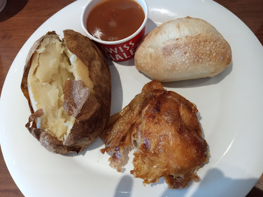 Today I went to this location to get Swiss Chalet. I placed my order and the cashier had nothing but attitude when I asked a question. I then went to fill up my drink and find a table, when another woman had already come out with my plate. I hadn’t even sat down yet. Every single table was filthy. I told her I would wipe the table myself. After that, I sat down and took a bite of my mashed potatoes, they were FREEZING cold. I do not have the patience for this as I work in food services, I know the standard. I got up and took my plate to the front, I told the attitude ridden cashier I wanted my money put back on the gift card I used. She began arguing with me, saying I couldn’t have the money put back on the card. I told her I wanted my money back in cash, a store credit or something to make up for this pathetic lunch. She continued arguing with me, so I argued right back. She would not cooperate and give me any form of compensation until I threatened to phone the police. She then told me to wait outside and she would bring me my money. I told her that wasn’t going to happen, so she threatened to call the police on me instead. Needless to say, this cashier is argumentative, ignorant, and overall completely unprofessional. Over all, absolutely filthy location, horrible staff with horrible attitude, and to top it off FREEZING cold food. There was 1 person eating in. Why were the tables filthy dirty? Pick up a rag ladies! You...