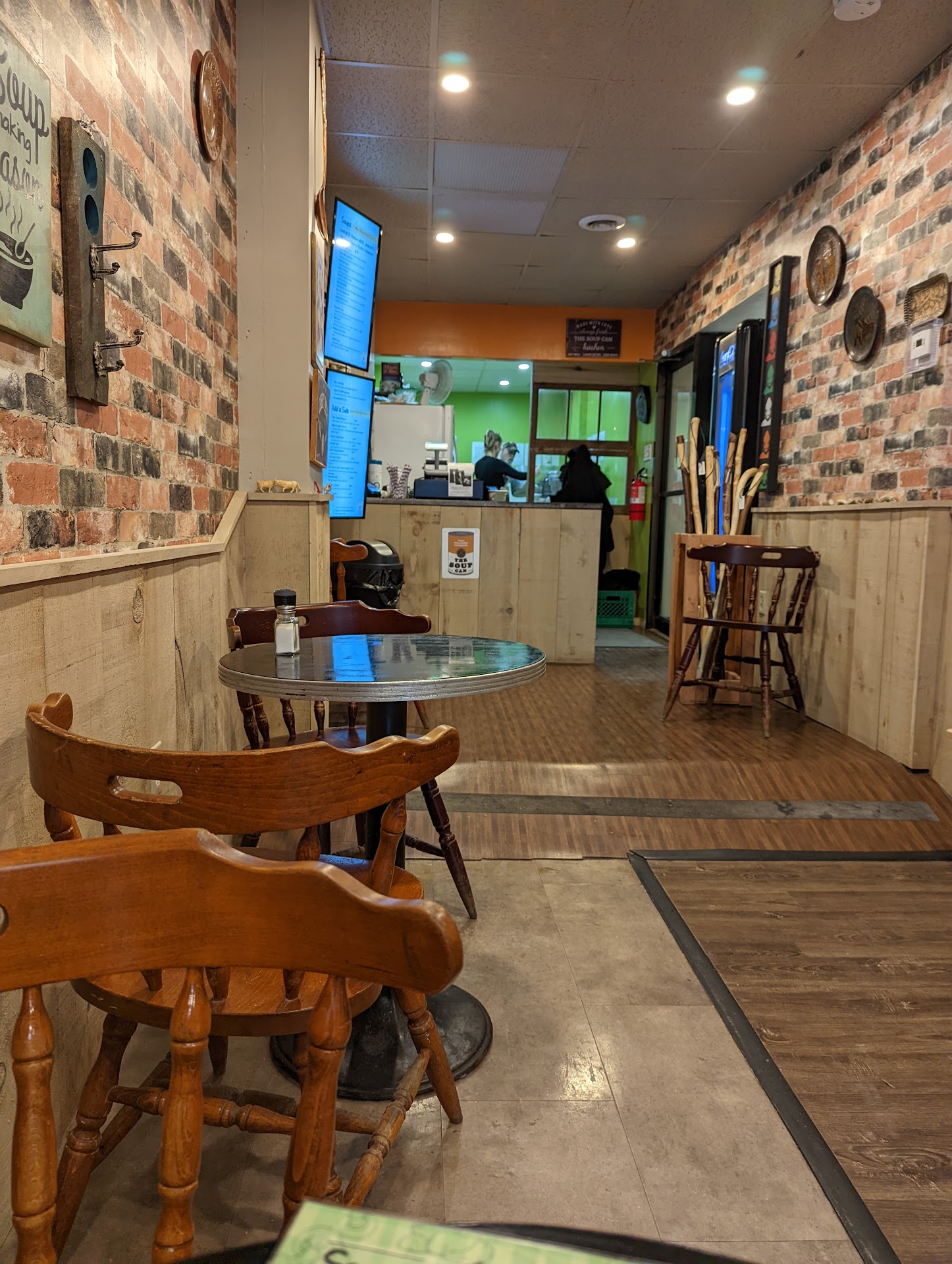 The Soup Can came to our rescue on a cold, blustery afternoon when all the nearby eateries gave us the shoulder ("we're fully booked," one said; "we have yet to start lunch service," another retorted). We entered the The Soup Can without much confidence because it was the only available option in the neighbourhood and my spirits dipped even lower when I realized that there was only 1 person behind and in front of the counter. We placed our order for a dumpling soup and the smoked chicken noodles soup, and prepared ourselves for a long wait. When our order came out of the tiny kitchen in an astonishingly short time and reached our table, we were surprised and how!! The dumpling soup was full of umami flavour, the dumplings themselves were well-made. The noodles soup was the star - infused with smoke and redolent with spices, it was the best experience in Napanee for us that day. When we said our goodbyes to the chef cum waiter (a gentleman in his senior years), I told him with unalloyed happiness that his soups were among the best I have tasted. I don't know whether we will ever be in Napanee again but I will always carry a bright spot of the place in my heart. Pls visit this tiny, hole-in-the-wall place for some...
