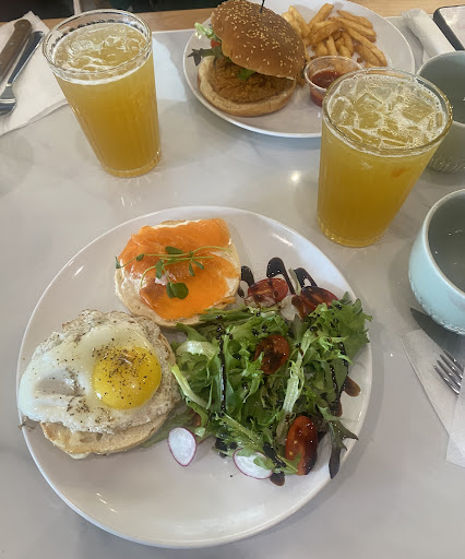 My family came in for Motherâs Day, and had a truly concerning dining experience. We put in our drink orders around 5 minutes after sitting, and placed our food order another 5 after. We waited close to 40 minutes without our drinks and were not offered water at this point, nor were servers making rounds to request water to. Our server was not familiar with the menu and tried to tell us a menu item did not come with a side (we had to point it out to her, at which point we were able to order a side). At around the hour mark one plate arrived at our table with no sign of our drinks or other food. Iâd say 5 minutes later a server asked if we would like waters and she shortly returned with them. We all got our food spaced out one by one.(we still hadnât received our drinks). We asked them to cancel our drinks and they said they were already made and just waiting super quickly for one. We waited for another 10 minutes and only 4 of the 5 drinks were brought out. We were told it was coming shortly. They then returned and told us the drink was not able to come out and offered a free soda for the 5th drink. As for our food, it did not come as described. The âshoestring friesâ with the ribs are thick cut fries resembling Costco fries. My fried egg was undercooked and made me feel ill. One of the items were requested as spicy and my sister was told she should have ordered it that way, despite my hearing her do so/the server write it down as such. Some of the plates are not filling, namely the waffles as they were not âthickâ like described. My bagel had skimpy portions of avocado and salmon. It seemed as though there were only 4-5 staff members that were wearing different hats. Our server said there was no manager when I requested an incorrect entree be comped, but she did comp all of our drinks. I was very disappointed, as the business looks gorgeous and I was expecting to enjoy my time. It appeared like the other patrons were experiencing similar difficulties, and there was a general air...