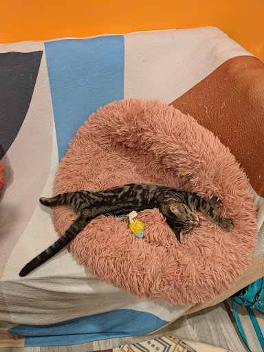 Read moreGreat place to visit with friends have some snack and drinks, and get your kitten/cat fix. Drinks are included with admission. Kids are allowed, but I recommend if they are under 7 not to waste you money. The space is divided into two rooms, one for kids under 7 and one for ages 7 and up. Unfortunately, the majority of the cats stay in the larger room accessible to the older kids and adults. That's also the room with all of the couches. They gave us some treats to try to coax some cats over to the little kid area but it didn't work. They stated the reason for the two rooms was that it is to give a safe space for cats who don't do well with kids or loud noises kids make. Understandable. Just disappointed that our little one didn't get to sit with them upstairs. Also, we were there with friends that had kids from ages 3 to 13 and we had to stay with our kids to supervise but could not all sit together and visit as some of us had to stay in the lower area with our littles. Again, nothing against their rules or the facility. I am just posting to give parents of littles a heads up that if you are going with friends or littles know that you have to stay in the separate area and may or may not have cats with you. The admission fees do go towards the costs of taking care of the kittens and cats and all cats are up for adoption. So if you are thinking of adopting definitely come check this place out. On the weekends it is $18 for ages 13+, $13 for ages 7 to 12, $8 for ages 1-6, and kids...