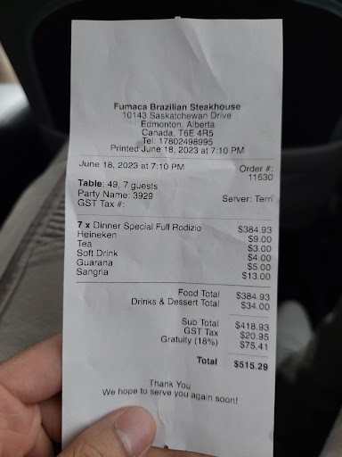 Read moreWell I’m sorry but I have to do this. Food at best was 1 stars, meat was over cooked and not properly seasoned. They say you get 12 items but we only got 8 selections at the most and sad to say that some of the meat had that taste when you know the meat is old. The roasted pineapple was delicious, Now here’s the worst part about this establishment. We were the first ones there and it had a really bad smell of dirty mop smelling scent, like they mopped the bathroom and used the same water to mop the floors with. Sorry but it smelled of urine. Prior to leaving, my wife used the washroom and said that the bathroom smelled like urine as well. As time went on it got busier and we noticed that there were only 3 people manning the whole restaurant, the manager, waiter and a waitress. All three were extremely busy cooking, serving, and cleaning tables as best they could but service was sub par and slow. We sat with our dirty plates on the table for 25 minutes before someone finally bothered to come to our table. Last thing to mention…… the restaurant needs major renovation, carpet floors are dirty and worn out, tables are sticky, the outdoor patio is in a sad state. I’m really disappointed because this is the second time we have gone, the first time many many years ago had an excellent atmosphere, food was fantastic, with the actual 12 different cuts and seasoned perfectly, pleasant fresh clean smell and great music with it being staffed like a restaurant should be. I personally believe it’s just a matter of time before they lose what ever customers they have left. We will unfortunately not be going back. Pampas is a little pricier but the quality, cleanliness, and service is top notch. My apologies as I hated passing on this information but the truth needs to be told. Shame on the owners for letting what used to be such a great place, go...