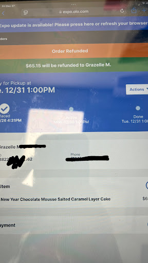 On December 26, I placed an order for the Chocolate Mousse New Yearâs cake via their mobile app for pickup on the 31st. The following day, I received a call informing me that the cake I ordered was unavailable. I spoke with a lady whose name I unfortunately forgot, and I asked if the WEM branch could fulfill my order. She confidently told me that the design or specific cake I ordered was unavailable throughout Edmonton, and my only options were either to select a different cake or get a refund. I inquired about other brown cakes as I wanted a brown cake for New Yearâs Eve. She offered me the holiday cake with Nutella flavor from the Christmas collection. She told me to decide and call back after at least an hour.