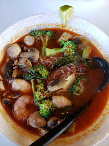 Food: Tom yum noodle soup: great lemongrass flavor; not too much msg. Quantity of noodles is a bit subpar. Decent amount of ingredients (got the shrimp version and got 5 shrimps).