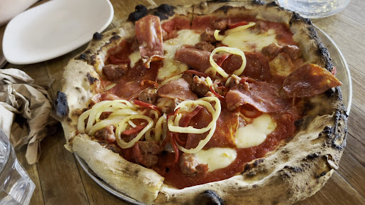 As a pizza connoisseur I don’t have the type of joy that would bring me back in the near future. But if I was in the area going for a river side walk I may venture there for a pie to go or entice myself in a gelato if it is egg free. I wouldn’t bringing young children there for a birthday or for dinner too noisy and pub feel for young kids in my opinion. Especially seating in the north side of the bar. If they have families coming they should seat them furthest from the bar. Also last note the pizza boxes are way too big and oversized for the small pizzas that go in.