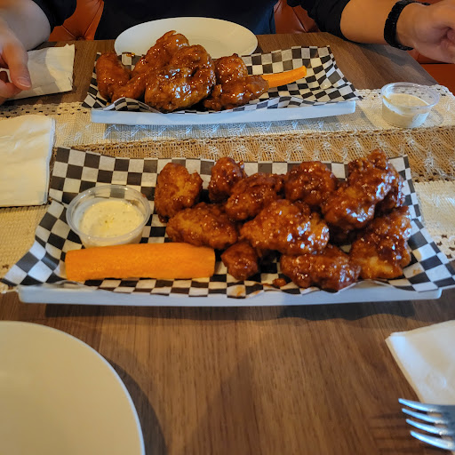 Food: a little disappointing to be honest. The breading for the boneless chicken wings was very thick and they used chicken breast too, so it makes you have that unnatural full feeling before you're actually full. The shrimp tacos were okay but I will always question people who put regular cheese on seafood, even on a taco. Didn't taste bad though. The beef taco that I got with the deal was much better than the shrimp taco. The burger was pretty average when you compare it to other bar and grills. It looked good and they didn't use raw onions like some places but it was a very basic burger overall with no crust or char. I would argue the fries were better than the burger because they had an excellent amount of salt and we're lightly crispy.