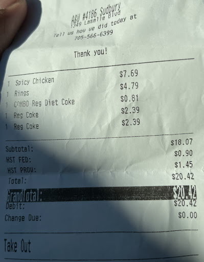 Service was nonexistent. I remember the days when a โthank youโ received the response โyouโre welcomeโ. The drive thru attendant provided a โstunned lookโ and couldnโt be bothered to speakโฆclosing the window and walking away before I could ask for napkins. Hereโs my recommendation to this location franchisee. How about putting the slightest effort towards your food preparation and customer service? Oh well, hereโs a review of 1 out of 5 stars. Good riddance. Two thumbs...