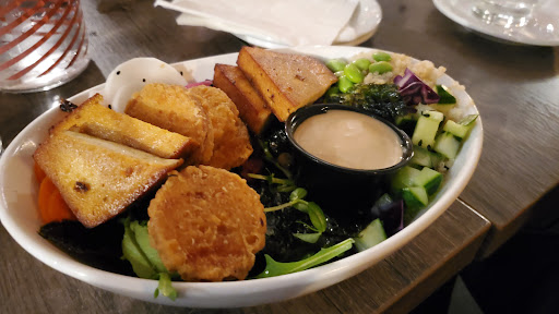 Regarding the food, while the vegan pizza was enjoyable, the Miso Bowl could have been tastier. Additionally, it seemed that the restaurant was understaffed, as the employees were rushed and struggled to keep up with orders, resulting in delays and difficulty obtaining service.