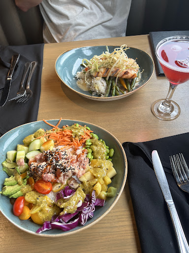 I had the ahi tuna bowl and I'd rate it a 4.5/5, it was amazing the dressing on it was to die for! I loved the edamame however the large chunks of cucumber were awkward to eat with everything else and I almost wish there was less carrot and red cabbage. I do love both of those things but there was just a lot on the plate, I would've preferred more rice or edamame. The amount of tuna was perfect for me.