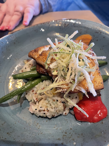 Delicious drinks, pretty unique items on the menu and a lovely view from the patio. I'm happy to finally see a few vegan options on this menu! I don't believe this is very new but I haven't been in quite some time. We went on a dismal gray evening and only their patio was available if we wanted a table right away. It was actually awesome, their patio has a high roof covering with an enormous heater built into it. I didn't notice the heater until I got so warm I had to remove my jacket which I first thought was because of the very tasty mushroom soup I was sharing with my 5 year old daughter (who "doesn't like mushrooms" š) but I noticed it when I looked up. The service was very good, though (we never asked so no big deal) no one ever thought to give us a cloth or a few paper napkins or even coasters as the humidity really made for a lot of condensation on our drink glasses and soaked a large part of the table. The servers may not have been able to spot that from the angle they were at mind you but it would have been a nice touch. The service was still very good, courteous, prompt and some enternaing personality š my daughter enjoyed her pasta with tomato sauce and a nice sprinkling of fresh grated Parmigiano, she was delighted with how yummy the cheese is all my itself š my husband was a bit disappointed with his fish tacos as they were not as good this time as he recalled them to be and he didn't really enjoy his choice of root veggie fries but I thought they were great! I had the kale noodle stir fry and it was pretty good but I don't know that I'll order it again. It almost has a cream type sauce (vegan though which is awesome, thank you milestone! We'd love to see more choices!) I wish it had more veggies or something, I'm not sure exactly. We will probably go back someday for appetizers and definitely try something else next time. If you're lucky enough to have a choice on the patio, I recommend closer to the north east side as there's a nicer view of new sudbury from that end but the entire patio is west facing with very lovely...