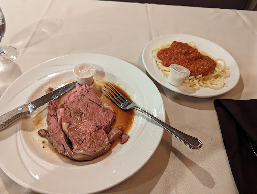 When it came to ordering food, the Prime Rib was mediocre. We ordered ours medium, but the order was clearly raw. My girlfriend ordered the béarnaise sauce prime rib, and the sauce came out crusty, cold and tiny. Barely covered half the steak. A few steaks that our party ordered came with kitchen labels of rarity still in the meat. My brother ordered the caesar salad, which was made with store-bought dressing and was drenched with sauce. Veggies were pre-cut, and tough.