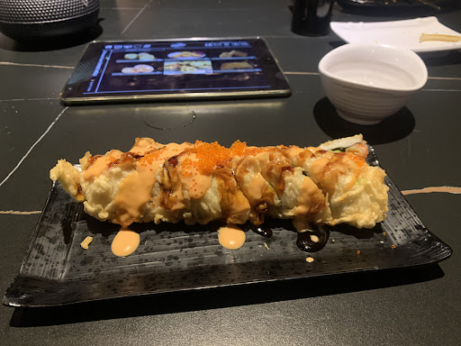 Read moreServers really nice. Did not check in often enough though (for example after they forgot our last item, it was 20 minutes before we had to call someone over, with doubts we were remembered). Crowded atmosphere, but well decorated. Got there and table was not clean, had to swipe off crumbs and saw a sticky spot. Also the floor was so slippery, I kept pushing the table by accident, and sliding in my chair. For the food, they drown everything is spicy mayo. Just go to the South End Okinawa, the food is better. Chicken wings were dry, deep fried California roll was not as good as Okinawa, etc... Also, don't put seats near the bathroom. Fire exit was blocked too, pretty sure that one is illegal, or at the least is not considerate in an emergency. Overpriced. $85 for two people (just the all you can eat, no add ons or booze), as if...