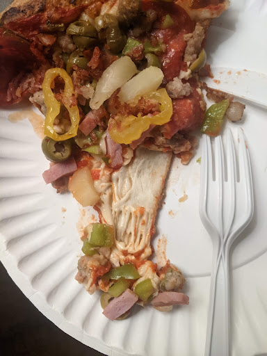 It arrived quite quickly and we didn't really think anything of it other than "awesome our food has arrived"...We took one bite and spit it out and realized the pizza was raw, the pizza dough wasn't even cooked at all! We tried calling back to get a new pizza but by that time it was closed and we ended up throwing out the entire Pizza and had to eat a bag of chips from our hotel lobby machine.