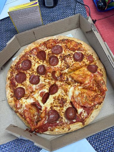 Upon a staff serving me, I checked my items before leaving. As I thought it was dry as hell. I opened and showed her and she said “that’s how it’s always been”. For one, NO. We order here all the time so that’s definitely not “how it’s always been.” The pizza crust has been extremely “dry” and so are the breadsticks. Normally the bread sticks are tossed in garlic butter and have sprinkled cheese on them. The cheese doesn’t even stick because they haven’t been tossed in butter. The pizza is never cut through. We are always having to cut it again at home.