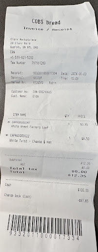 Legally, my receipt only showed that I had given $100, so there was no track of the additional money I had given her. I recall providing Robin with the extra $2.35, but unfortunately, this was not reflected in my receipt. I understand now that it's best to stick with the exact payment to avoid any confusion or discrepancies...