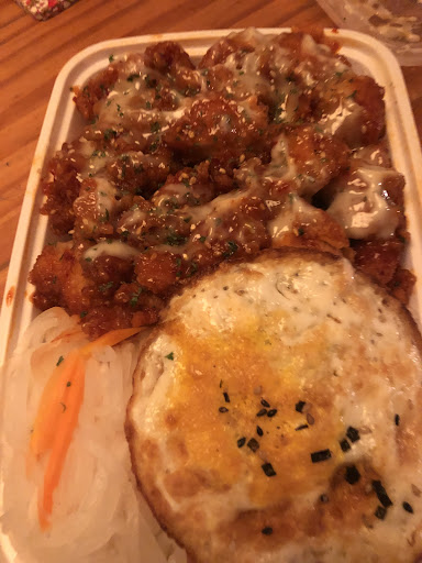 Read moreWe've ordered takeout from here a few times now and it's always been pretty good. There are a good variety of options available, but I would especially recommend the Coco Bap, which is chicken, fried egg, and rice with a side of kimchi (a sort of fermented cabbage dish). I ordered mine with sweet and spicy sauce, which wasn't all too spicy despite the name. I would definitely recommend either this sauce or the honey garlic sauce. I haven't tried the honey garlic sauce myself, however my brother did and he said it was quite good. I think the chicken was also topped with a mayonnaise (possibly Kewpie mayonnaise?) that added a certain tanginess that complimented the flavour of the chicken and sauce nicely. The highlight of the dish was the chicken, which was fresh and well seasoned, a slight crunch as well but not overly crispy. I think that for what you pay, you are given a pretty generous amount of chicken. There was one fried egg included, which was nice, though it was cooked a little too long one time and consequently the yolk had mostly solidified and was not at all runny. That is a minor complaint, I think. The egg is supposed to be mixed into the rice, though I did not do this. The kimchi was a neat addition, adding a bit of variety to the overall flavour of the dish. Overall, I think this is a nice place to get very good food at a more...