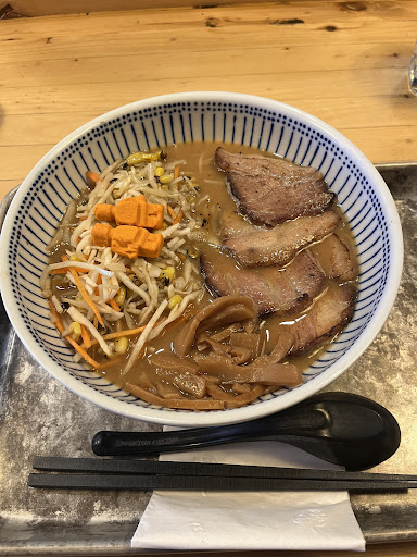My Northern warmer had a decent flavor but wasn't what I was expecting. The description of a Sapporo Miso Ramen with Corn and Butter was very inviting but what I got was very meh. The Butter turned out to be in the shape of little Robots which is a neat idea, but it only looked neat as the taste was just blah. The Corn was fried with some other veggies. Noodles were soft and over cooked and the Ramen itself wasn't hot.