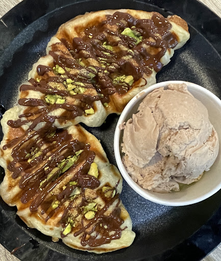 But the second time also , very bad experience from guelph location. i ordered 2 croffles, dark choco and treat me. and my friend ordered cookie butter. it was poorly packed. when i received it the icecream container lid was opened and it was all over the bag. not only that ,same as before treat me was flooded with cherry and white sauce.. couldnt even eat because of the loaded syrup.. Wondering if the staff wanted to finish the bottle so they dumped all in it or so.. Also i got bananas from it. i carefully checked back and none of my croffles should have banana in it. The service...