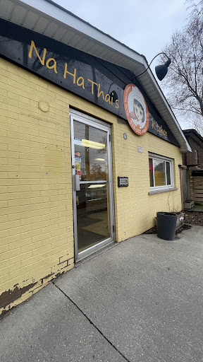 Just back from a harrowing, slushy drive back from picking my son up from Toronto airport, we’re driving into Guelph on York Rd, wondering where we can safely pickup something that isn’t the same old, same old takeout, and we spotted the cheerily lit up storefront of Na Ha Thai’s Kitchen through the flying snow!