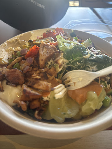 Read moreThe place was nice and clean. The vegetables looked and tasted fresh. The red meat isn't halal at this location. I was visiting from another city and wrongly assumed it would be halal. The staff was kind enough to change my order to chicken bowl even though my earlier ordered red meat was on the gridle. The meat isn't freshly roasted on the pit in fact I didn't even see the pit when I visited. The server heated the frozen chicken with veggies on the gridle which was a little black, probably not cleaned timely. The meat wasn't hot enough when I ate it a few minutes later. The quantity of meat wasn't generous for a medium bowl. At other shawarma places you can get more meat for the same price. I just think smaller cities have no competition so they get away...