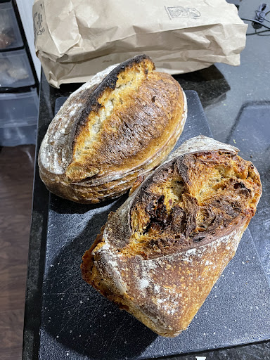 The loaves pictures are the Country Loaf, Chipotle Cheddar, and the sourdough cinnamon roll with apples.