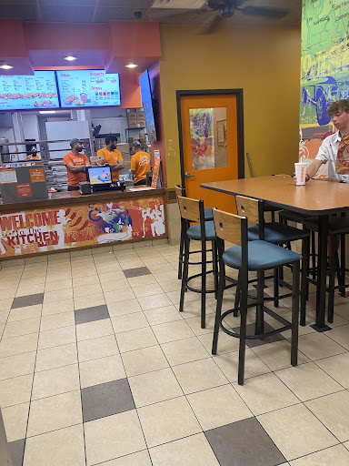 All tables were very unclean, with crumbs and grease. Asked for a cloth to clean the table and staff came by to clean it - only partially removing the crumbs and barely the grease. No napkins available without asking for them so we could clean ourselves. Staff walked by 5 other very dirty tables on the way back to front counter, not stopping to clean one of them (even though it was dinner hour and many new guests were arriving to try to find a table!). Was willing to look past the table issue, but when we received our food, there were no napkins. Staff both looked at me like I had six heads when I asked for napkins, and hesitantly handed me just 4 single napkins - one for each member of my group. Again, was willing to look past this, as I hadn’t had Popeyes in quite some time and was excited for my food. Upon biting into the chicken, I felt a rubbery sensation and realized that the chicken was slightly undercooked and pink most of the way through. I was in a rush and unimpressed with the help I had received so far, and so I abandoned the meal. I can’t say what other Popeyes are like, but this specific establishment leaves a lot...