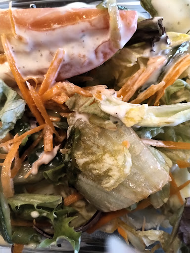 The chicken wrap and side caesar salad was not any better. Normally the wraps when in dining are a good size. This one looked like it was half the size. The Caesar salad was nothing to write abt either!