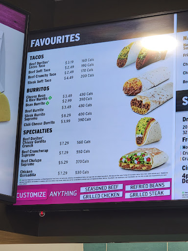 Read moreUpdate 2023. Tried for a steak supreme burrito. Got a all bean burrito with MAYBE one teaspoon of meat in it. $10 nearly and no meat. I'm done coming here now forever. Kept trying periodically but ultimately a waste of money. Find another taco bell or go to a slightly more expensive place and actually get what you pay for. This place is ALWAYS a let down.