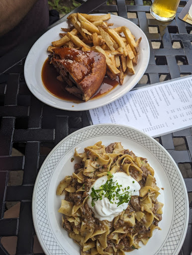 Ā Ā Ā Read moreQuite underwhelming. Our initial server first tried to seat us at the same table as 2 other people (intended for 4 ppl), which was bizarre as we did not know the people, and they were not even asked ahead of time if it would be alright. The server just wandered us over, said "how about here?" with a smile that said they knew it would be awkward, upon which we turned it down - for a table which was totally free, 5 steps away, in the process of being cleaned. After this, things went smoothly - we sat on the patio, where there was a menu written in chalk on the pillars outside. As this was our first time here, we had no idea, and were not pointed to this unofficial menu at all by our server. We would've probably got an appetizer from there if we saw it, but neither of us were disappointed after the fact, as the food wasn't so good. It tastes fine while you eat it, and it's presented kinda well, but we both had stomach aches after the fact. Probably their ingredients aren't the highest quality - and for the price, I could go anywhere else in Guelph, pay the same amount, and get great food and great service. In any case, it wasn't horrible. Would give 2.5 stars if I could. We got the duck stroganoff and the steak and mushroom pie. The best part of the restaurant was the location - you're surrounded by green...