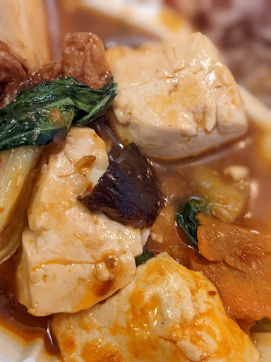 My spicy eggplant literally only had 3 pieces of tofu in it... This was our first meal after 2 days so we were starving, yet my partner couldn't finish his dish because it was way too salty! I tried a bite and it was overwhelming. My partner ate maybe 3 bites of his food and we told the server MUTIPLE times we didn't want to take the leftovers home, it was way too salty, something was wrong with it, and that's why he barely ate any of it. Yet she still packaged it and tried to make us take it! So uncomfortable, she kept acting like she didn't know what I was saying. She kept saying she would give a small discount, but gave me the debit terminal with the original price. After confronting her she quickly updated the cost and walked away. Still paid $50 for the worst dining experience we ever had.