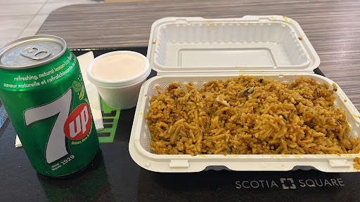 The food would be decent. But, one of the things that I want to point out is the tipping fatigue at the place. They only have a little place where they cook. The dining area is managed by the scotia square mall. So, technically they are putting the. food kept on keep warm setting in disposable containers with a few utensils and expecting a tip. Most of the times when I go for a few items then after the tax and the tip it usually gets to around $20. The food was spicy but was able to handle with pop. This might seem weird but there were a lot of other restaurants at the floor that were giving fund under $15 after all charges and were not asking for tips. Those restaurants were also doing a lot of things from scratch and giving things fresh. I would love to tip at a restaurant where I use their utensils that they would need to wash later, there is a server who needed to carry heavy food trays and the chef was making things fresh but would not like to tip for pre heated food that I carried to find a table to eat and then dispose off...