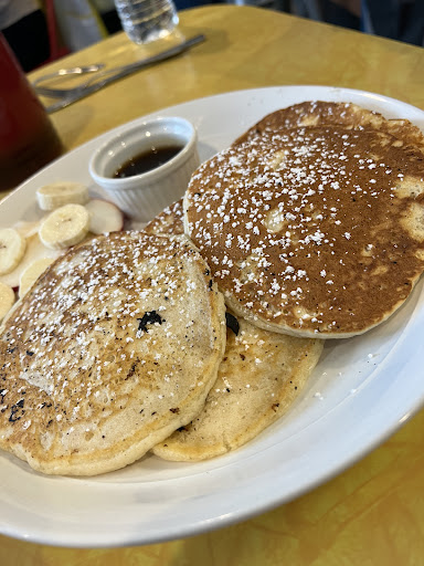 Orders the pancakes as a third dish and they were uninspired and flat with thickness like a crepe. The best part was the store bought syrup sadly.