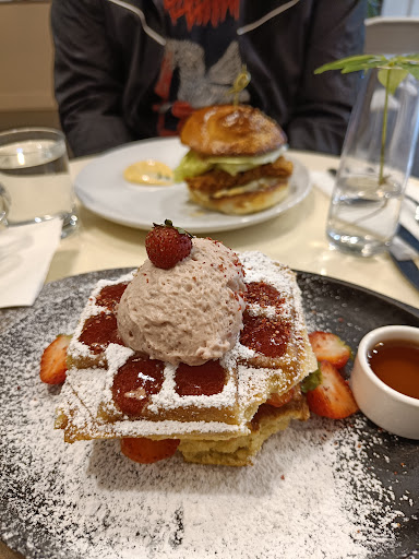 Read moreCame here for breakfast. The menu is small, but has some good options. Interior design is very modern. My waffles were good, the chicken burger was a bit on the sweet side for a savory dish.