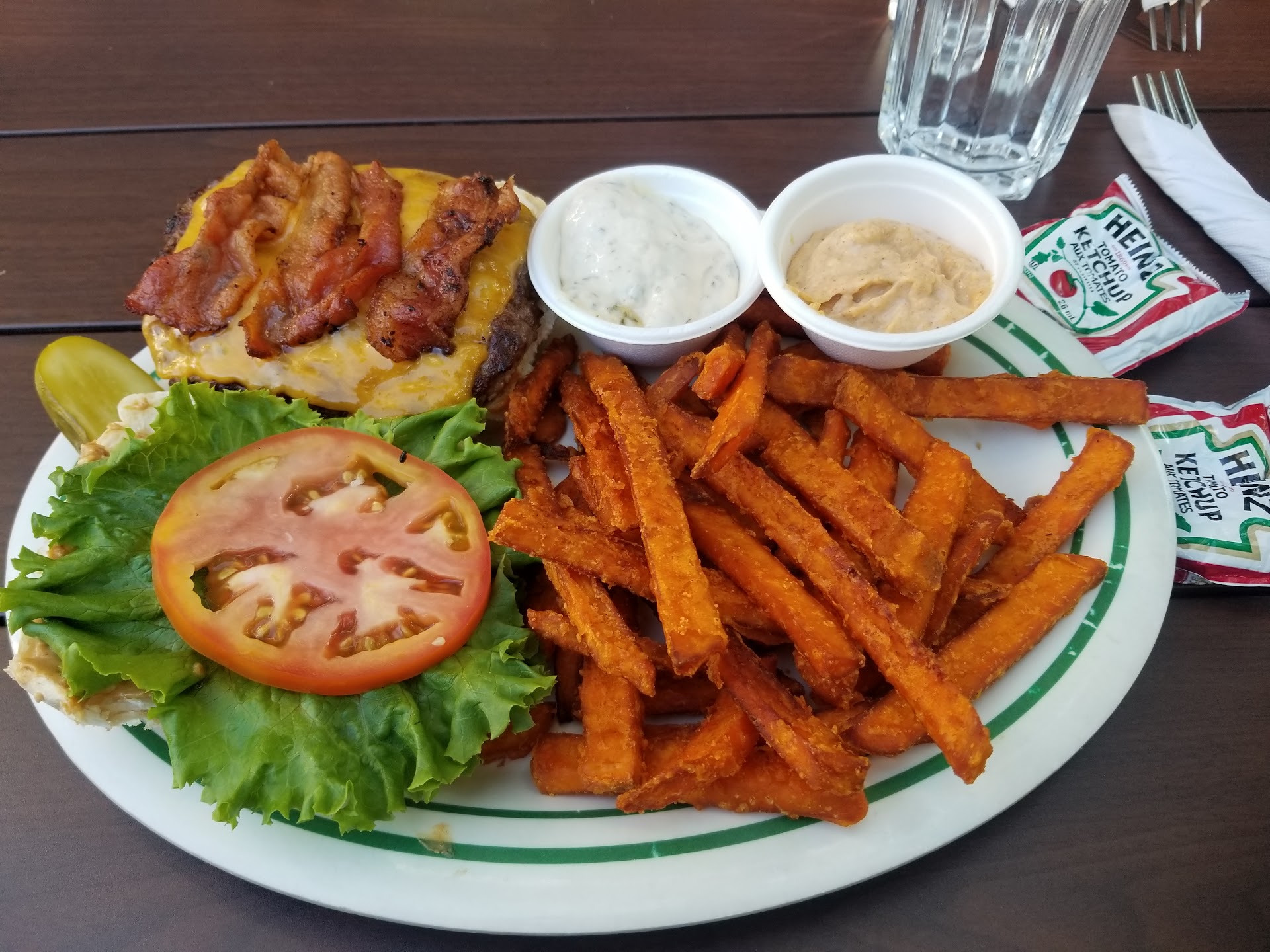 Read moreI reeeeeealy wanted to give this place 5 stars. They were soooooo close if not for the girl who sat me and sadly served my order. Darrell's is one of those quintessential burger places where there's nothing fancy and its just the way you like it. No doyle's, no table cloth, no dress code. Just honest cooks slaving over a fire making honest food. And the food was delicious. I had the classic bacon burger and was delicious. No smash, no fancy sauce, no silly name... honest. And the fries ..... best ever. So why just four stars?? First impressions are everything, and mine screamed, "... man, just when I wanted to go on break", or, "... will this night ever end??" Thank God the person taking my order genuinely appeared to care about my presence. Unfortunately, the same girl who sat brought me my order. And in the 50 years of eating out, this was the VERY first time someone has dumped a handful of ketchup packs on top of my meal?!?! Im sure that was some sort of health code violation. Some might call it picky... perhaps frivolous, but really .... you couldn't have used two hands?? I've been in the business before and that kind of service wouldn't have lasted a single night.