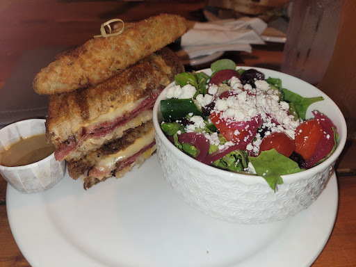 My wife chose a panini and side salad which came out pressed but lacking any grill marks (what I thought was a staple feature of a grilled sandwich), soggy and dripping in some sort of oil, way too greasy.