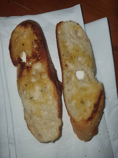 The bread is burnt, tiny and ROCK HARD. even dipping it in the soup didn't make it any better.