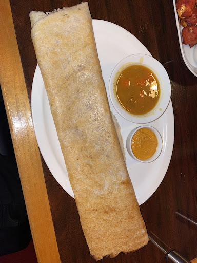 Went in on a Monday for lunch. Asked the server is dine in open. She said yes. Sat on one of the tables. She gave us the menu. I asked her if I need to show my vaccine and she was like okay! So we read the menus, seems like they have good amount of options. Ordered a plain dosa, paneer dosa and paneer 65. Paneer 65 came out in like 15 minutes. It was literally coated and fried and served with a sweet chutney. Not sure how that works and did not enjoy it at all. (Also, I had to ask the server if we would be getting some cutlery).