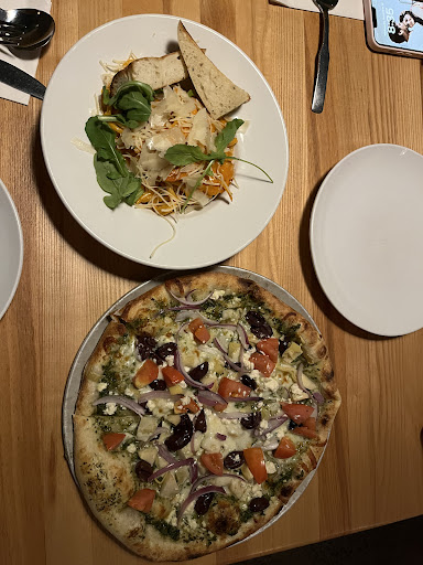 Tried here for lunch on a sunny Thursday in September. There is construction going on outside on the street and sidewalk, and it was hard to squeeze around the barricade, etc to get to the restaurant entrance. I donāt mind this at all, but anyone with mobility issues would have major trouble getting in, so Iād recommend calling ahead to check the construction status. Or possibly there is an entrance from the building on the inside? Anyway, the atmosphere in here is nice, modern, big with lots of natural light coming in, seating for maybe 60 or 70 with booths and tables, simple dĆ©cor. Very friendly staff. Food arrived pretty fast, to be manageable for a work lunch. Iāve been to the other Morris East locations many times over the years and the menu is the same. I tried the personal size lemon chicken pizza (aioli, pancetta, goat cheese, arugula, parmesan, lemon confit), which normally comes as a combo with a choice of soup or salad. I didnāt want a side today, so just got the pizza and probably paid the same as getting the side, but thatās ok. It was very good, thin crust, lots of flavor without being too lemony, a tad greasy, but overall decent. My friend got the lumberjack pizza combo (tomato sauce, bacon, sausage, caramelized onion, Applewood cheddar, mozzarella, fried rosemary, maple drizzle) which he was very happy with, for the flavor, portion size, texture, etc. The best part of the experience though was his side of soup. The daily special was cream of potato with bacon. Wow ā I sampled it and found it tasted like a shortbread cookie! He loved it as well, despite mentioning it does taste like potato, with a touch of nutmeg? He would go back and order a large soup as a meal again, and if I wasnāt watching calories, I would too. Definitely will...