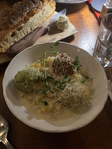 I'd give here a 4.5 based on my first try, Feb 27 2024 with 5:30 reservations. Arrived a few mins early and we were greeted right away, seated at a two-seater table in the right side larger dining room. The whole place I would guess seats 50 in total or so? When you walk in, the layout is basically the same as it was for years when other restaurants occupied the space. A large bar to your left, a couple of high tables. Toward the rear, there are a couple of steps leading to a back dining section that has a few tables and the staircase to go to the washrooms in the basement. (Unfortunately, the business does not seem to be accessible with any elevator, plus a few steps at the front entrance to get inside anyway). It's a darker, warm atmosphere with a cushioned booth along one wall of the larger dining area, standard wooden tables with comfortable chairs for the person sitting on the non-booth side. Very friendly, relaxed service. First question from the server was if we had places to be after the meal bc they would try to help make sure we are not rushed. This evening had a crowd likely going to the Neptune or concert afterwards, so this is great that the restaurant appreciates the clock. We tried the $30 Dine Around dinner menu and were very happy with that choice. Good value. I opted for the Market Salad to start (romaine, radiccio, roasted beets, pickled red onion, fresh pears, focaccia crostini, Pecorino cheese, white balsamic vinaigrette). It was just the right size for a starter, had great flavor & crunch, although I don't remember seeing any crostini, am sure it was there. My friend ordered the Bread & Butter, which is a large slice of toasted focaccia and two whipped butters. One was a chives something and I forget the other now, but both were delicious. It paired so well with a glass of the Alluria pinot grigio. The Dine Around main is the 'build your own' with choice of base, sauce & balls. I got the spaghetti, the signature fresh tomato sauce & chicken balls. Good amount of spaghetti, delicious flavor for the sauce without there being too much sauce to drown in it. The five chicken balls had strong thyme flavor (lemon, thyme & roasted garlic as listed on the menu). They were a bit dry and tough, but still very edible and better if you do cut them up and mix them in with the pasta. I purposely ate half of the dish and asked for a doggie bag to eat the other half of this the next day, being on WW at the moment. My friend ordered the rigatoni base (which was cooked to the perfect el denti) with the spicy tomato sauce (said it was decently spicy and delicious) topped with the signature all beef meatball. The Dine Around menu also includes dessert options of two ice cream scoops that he ordered two chocolate (very creamy and good flavor). I got the espresso-topped ice cream, served in a glass. I've never had this before and was pleasantly surprised by my first bite at how great it was, the single scoop of vanilla sitting in the warm coffee. We will...