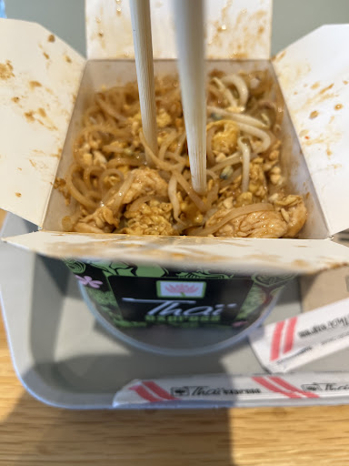 The above quote is taken from the side of the takeout container. Itās also how I feel about their Pad Thai. I love spicy chicken Pad Thai. Today I was at The Halifax Shopping Center when my craving hit. There was no line (unusual). My food took about as long as usual to prepare. I get a cup of peanuts with it and a set of chop sticks. Although it wasnāt as spicy as I like, it was one of the best Iāve had in a while.
